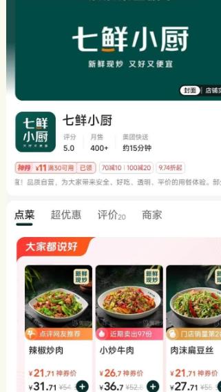 主编观察到,京东自营外卖门店“七鲜小厨”最近已经上线美团APP,并且免配送费,还能用美团膨胀红包。值得注意的是,京东新推出的独立品牌“七鲜咖啡”也上线了美团,暂未上线淘宝闪购/ 饿了么。