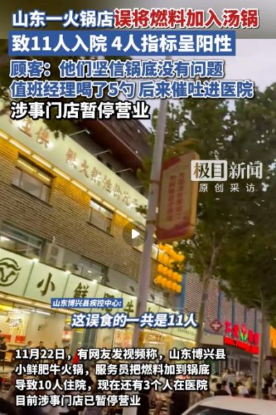 11月22日,有网友发视频称,山东博兴县小鲜肥牛火锅,服务员把燃料加到锅底,导致10人住院,现在还有3个人在医院。
